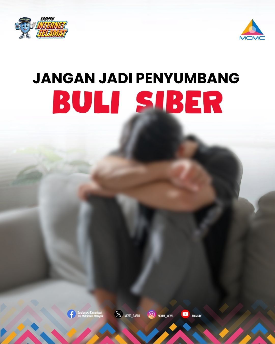 Buli siber bukan sekadar βgurauanβ. Ia boleh menimbulkan tekanan emosi yang serius serta memberi kesan negatif kepada kesejahteraan mental mangsa. Fikir dahulu sebelum memberi komen. Bersama hentikan keganasan siber. #MCMC#KempenInternetSelamat Sumber : Facebook SKMM