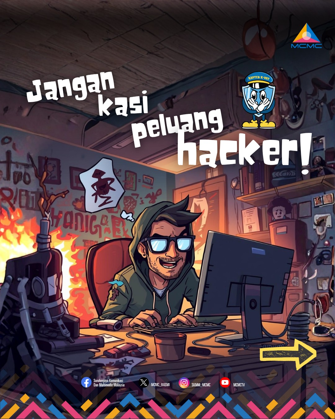 Kita kena jadi lebih bijak daripada HACKER! #MCMC #KempenInternetSelamat Sumber : Suruhanjaya komunikasi multimedia malaysia