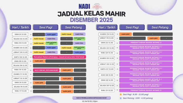 Tarikh 6 Disember 2025 , Sabtu Masa 10.00 pagi – 11.00 pagi Lokasi NADI Kampung Baru Nelayan Peserta 1 Orang Tujuan Kelas Kidventure ini bertujuan untuk bertujuan untuk membantu usahawan cilik merancang dan menyusun pelan perniagaan mereka dengan lebih teratur. […]