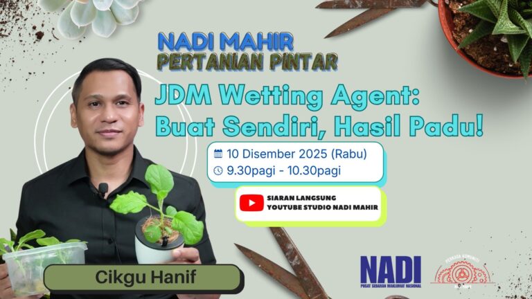 ๐ฑ MAHIR PERTANIAN PINTAR โ SHORT LEARNING SERIES! ๐ฑTopik: JDM Wetting Agent: Buat Sendiri, Hasil Padu! ๐ 10 Disember 2025 (Rabu)โฐ 9.30 pagi โ 10.30 pagi๐ YouTube Studio NADI Mahir (Live)๐ https://youtube.com/live/vvdODC3XxZM Jom belajar:๐งด Cara membuat sendiri Wetting Agent dengan […]