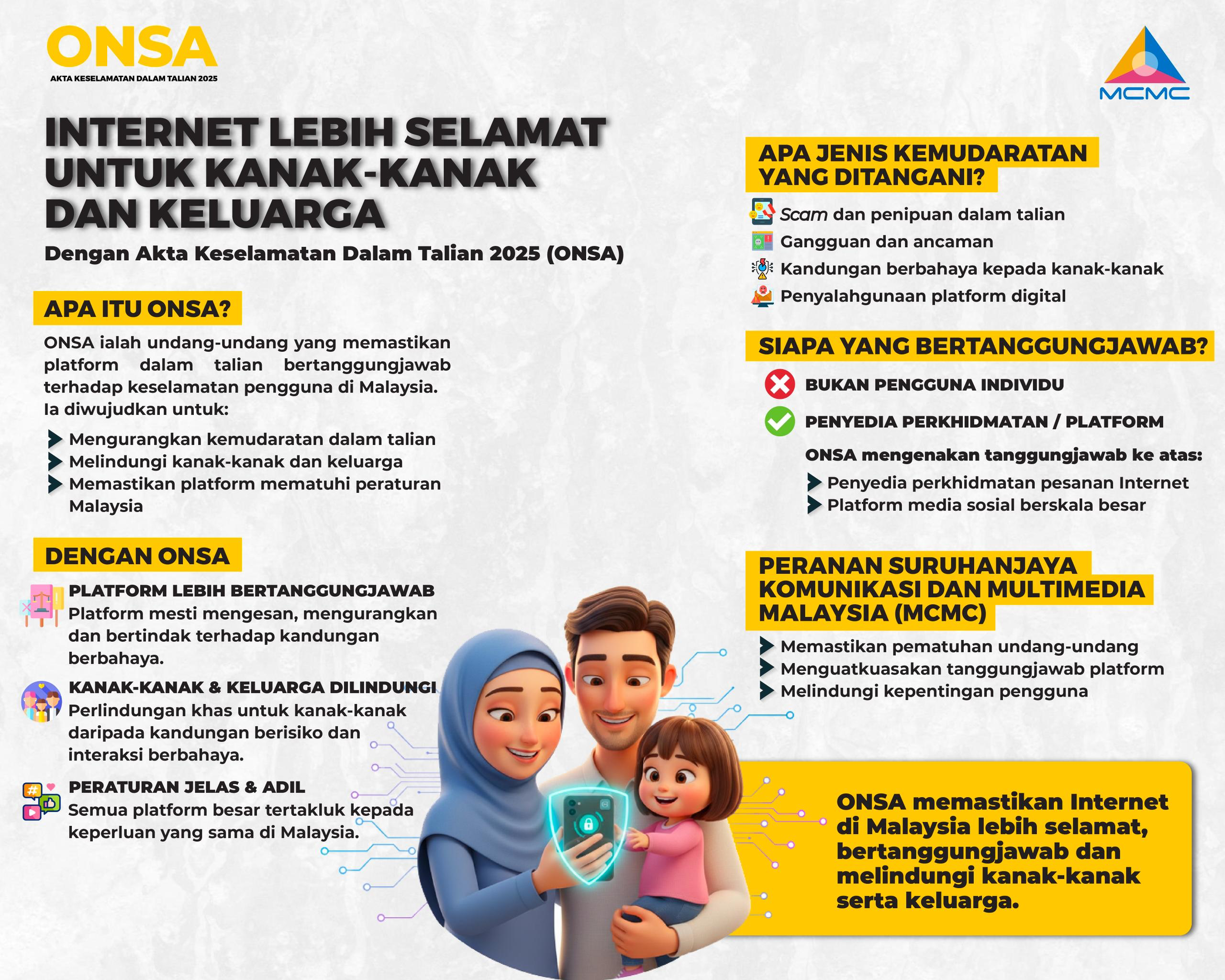Akta Keselamatan Dalam Talian 2025 (ONSA) memperkukuh tanggungjawab platform digital demi keselamatan pengguna. Perlindungan kanak-kanak diutamakan, kandungan memudaratkan wajib ditangani. Keselamatan dalam talian bukan pilihan, ia tanggungjawab bersama. Maklumat lanjut mengenai ONSA boleh didapati di laman sesawang MCMC dihttps://mcmc.gov.my/en/onsa/home #MCMC […]