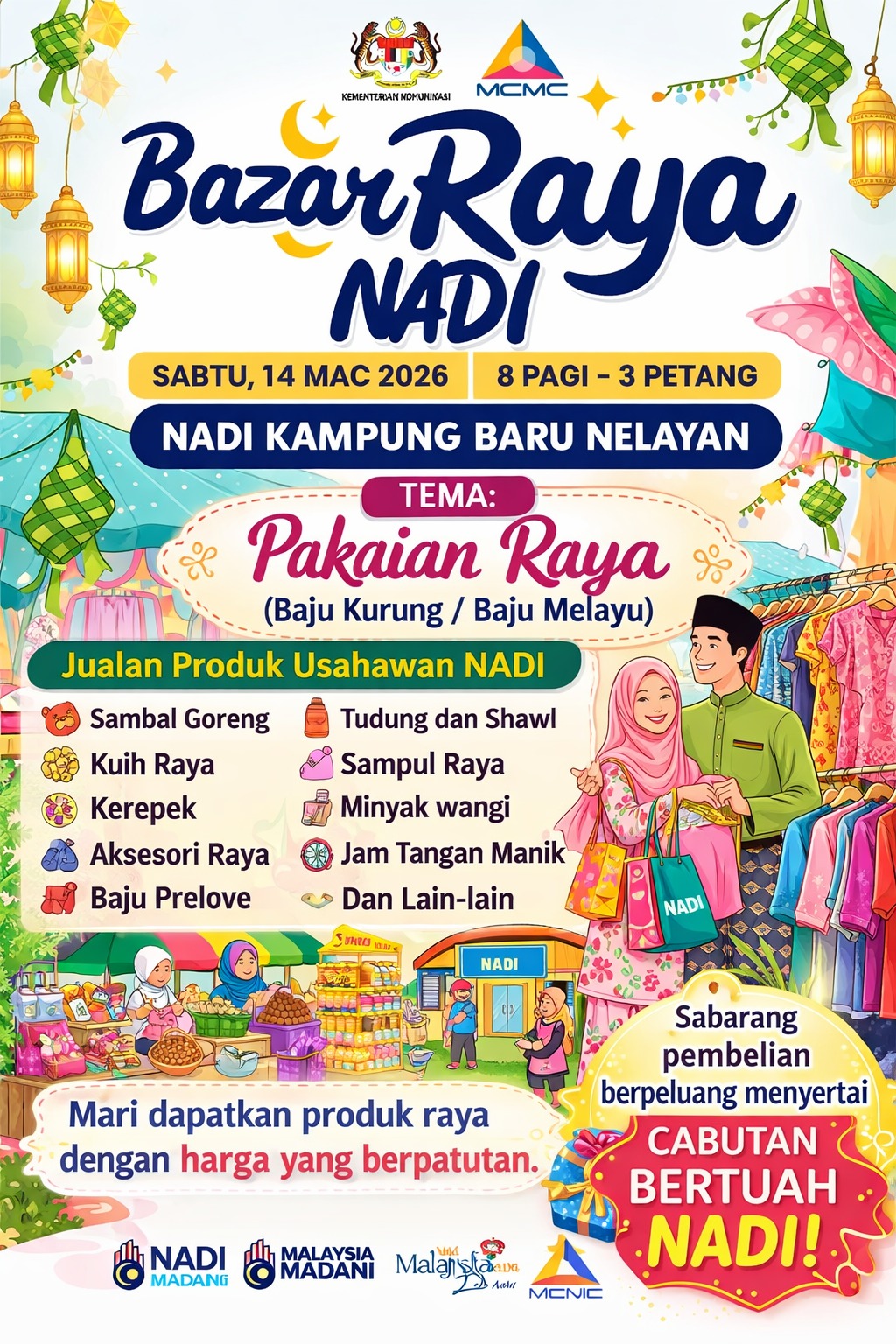 🌙 Jom ke Bazar Raya NADI! 📅 Sabtu, 14 Mac 2026⏰ 8.00 pagi – 3.00 petang📍 NADI Kampung Baru Nelayan 🛍️ Pelbagai produk Raya dijual seperti kuih raya, sambal goreng, kerepek, tudung, aksesori, sampul raya, minyak wangi, baju prelove dan […]