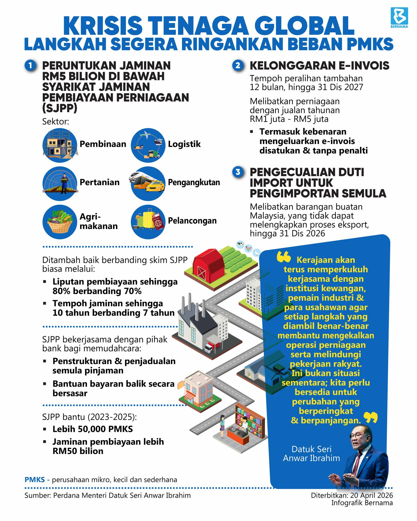 Jaminan pembiayaan RM5 bilion, kelonggaran e-invois bantu PMKS susulan krisis tenaga global Sumber : Facebook Bernama