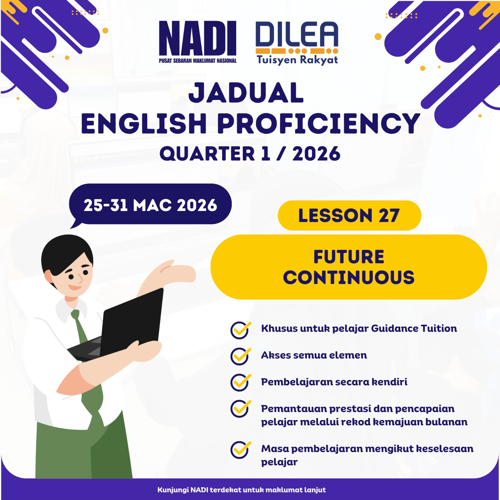 📢 ENGLISH PROFICIENCY 25-31 MAC 2026 📢 Khas untuk pelajar Guidance Tuition! Nak mantapkan penguasaan grammar Bahasa Inggeris anda? Minggu ini kita akan fokus kepada salah satu asas tatabahasa yang paling penting. Jangan lepaskan peluang untuk belajar secara santai tapi […]