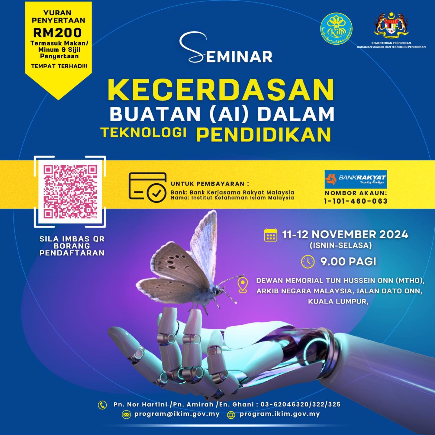 INFO KPM: Warga pendidik Kementerian Pendidikan Malaysia dijemput untuk menyertai Seminar Kecerdasan Buatan (AI) dalam teknologi pendidikan yang akan diadakn pada 11 dan 12 November 2024. Seminar ini anjuran Institut Kefahaman Islam Malaysia (IKIM) dengan kerjasama Bahagian Sumber dan […]
