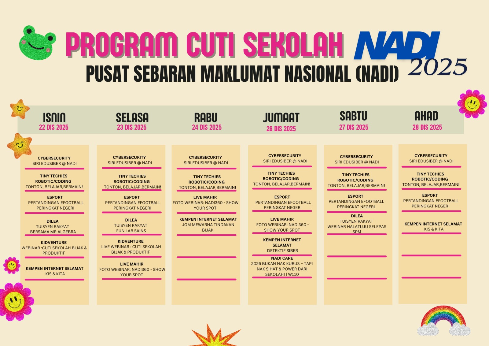 ๐ ๐๐๐๐๐๐๐ ๐๐๐๐ ๐๐๐๐๐๐๐ ๐๐๐๐ ๐๐๐๐ ๐๐ ๐๐ฎ๐ฌ๐๐ญ ๐๐๐๐๐ซ๐๐ง ๐๐๐ค๐ฅ๐ฎ๐ฆ๐๐ญ ๐๐๐ฌ๐ข๐จ๐ง๐๐ฅ (๐๐๐๐) Cuti sekolah kali ini lebih ๐ฆ๐๐ง๐ฒ๐๐ซ๐จ๐ง๐จ๐ค๐ค๐๐ง & ๐๐๐ซ๐๐๐๐๐๐ก! Jom sertai pelbagai aktiviti menarik di NADI dari ๐๐ โ ๐๐ ๐๐ข๐ฌ๐๐ฆ๐๐๐ซ ๐๐๐๐ ๐ง ๐ป๐ค โจ ๐๐ง๐ญ๐๐ซ๐ ๐๐ค๐ญ๐ข๐ฏ๐ข๐ญ๐ข ๐ฒ๐๐ง๐ ๐๐ข๐ฌ๐๐๐ข๐๐ค๐๐ง:๐น Cybersecurity […]
