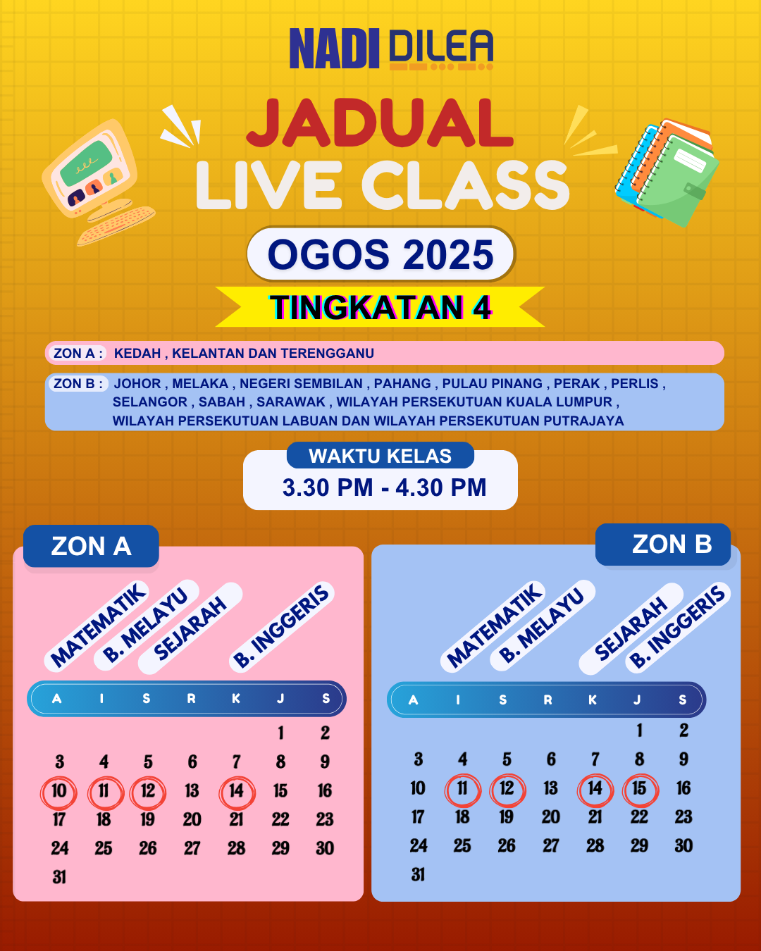 Jadual Live Class Dilea Tingkatan 4 Bulan Ogos 2025 Jadual Live Class Dilea Tingkatan 5 Bulan Ogos 2025