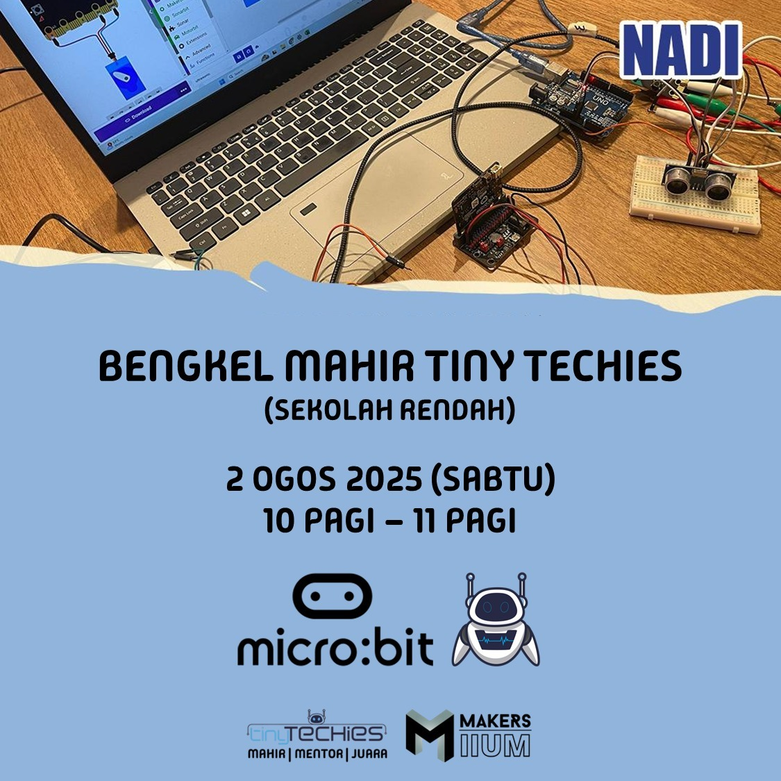 π οΈβ¨ BENGKEL MAHIR TINY TECHIES KEMBALI LAGI! β¨π οΈAdik-adik sekolah rendah dijemput menyertai bengkel teknologi asas menggunakan micro:bit!Mari belajar asas pengaturcaraan dan elektronik dengan cara yang menyeronokkan! π€π‘ π Tarikh: 2 Ogos 2025 (Sabtu)π Masa: 10 pagi β 11 pagiπ Lokasi: […]