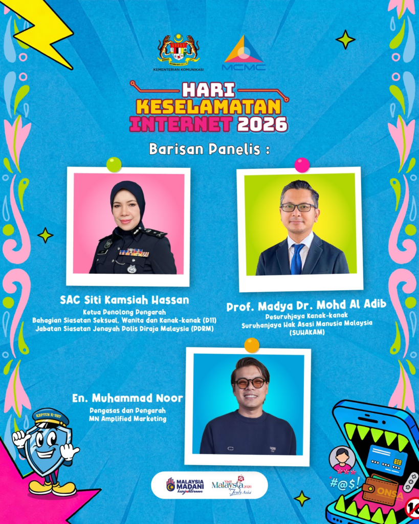Jom sertai Forum Internet Selamat, Tanggungjawab Semua sempena Hari Keselamatan Internet 2026 dan dengar perkongsian terus daripada barisan pakar dalam membincangkan isu keselamatan, tanggungjawab dan perlindungan dalam dunia digital hari ini 🌐🔐