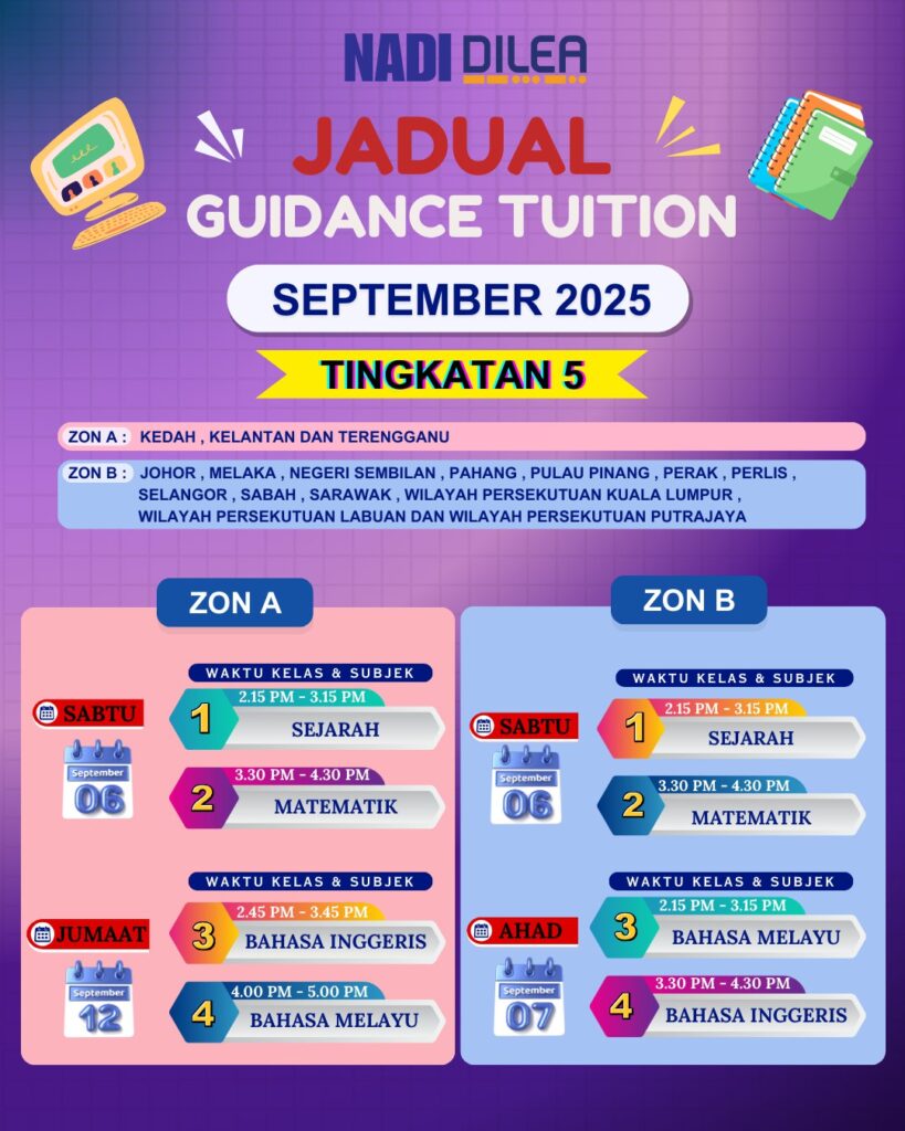 Jadual Guidance Tuition Dilea Tingkatan 5 Bulan September 2025