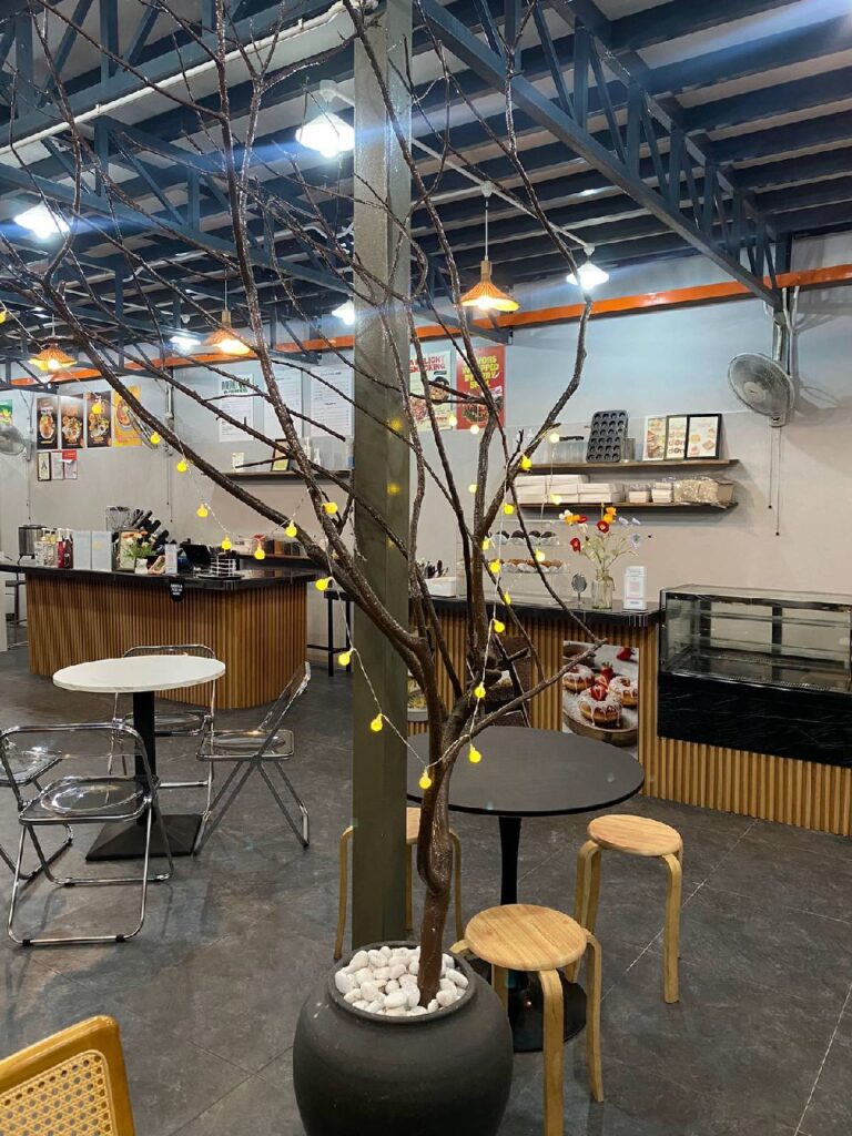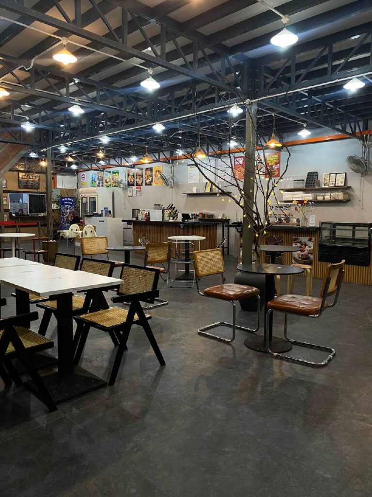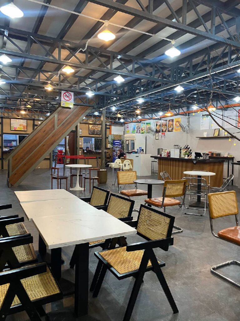 Di sini, anda boleh menikmati pelbagai hidangan Western, masakan panas yang lazat, dan pelbagai jenis minuman viral yang pasti menggoda selera. Tempat yang sempurna untuk bersantai, lepak petang, sambut birthday bersama orang tersayang dalam suasana kampung yang damai serta menyediakan sebarang event secara kecil – kecilan lain yang memuatkan seramai 300 Pax dalam satu masa 🎉🍔☕
