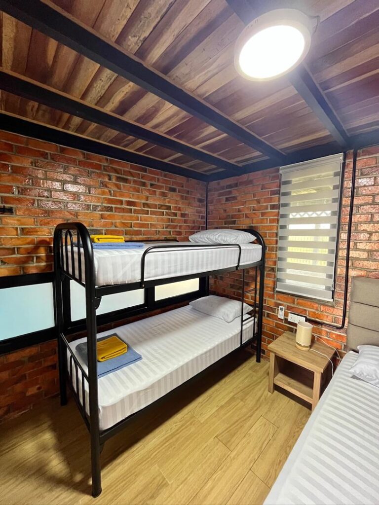 ~Bahagian bawah, 1 bilik berpintu dilengkapi dengan 1 katil queen dan double decker serta attached bathroom/toilet. Muat 4 orang.