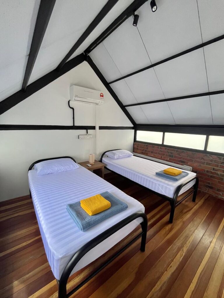 ~Bahagian atas/loteng, open concept, ada 2 katil single dan 1 katil queen. Muat 4 orang.
